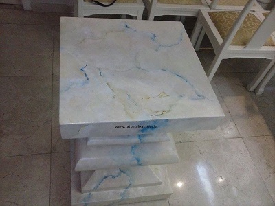 Prestamos serviços de marmorização com várias opções de cores e para quem quer aprender a técnica, disponibilizamos um ebook que ensina o passo-a-passo de como fazer a marmorização em nosso site (na loja virtual). A marmorização pode ser aplicada em colunas de gesso lisas ou estriadas, em objetos, móveis conforme as imagens abaixo.